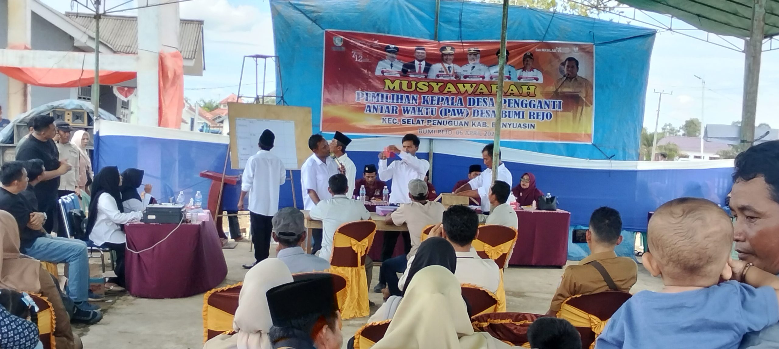 Selat penuguan, si.com// Tahapan Pemilihan Kepala Desa pergantian Antar Waktu (PAW) Desa Bumi rejo sudah terlaksana dengan sukses pada hari Senin 6 April 2026 bertempat di halaman kantor desa bumi Rejo kecamatan selat penuguan kabupaten Banyuasin Sumatera Selatan, ini merupakan tahapan puncak atau tahapan terakhir dalam Pilkades PAW Desa bumi rejo Kecamatan selat penuguan.(06/4/2026)