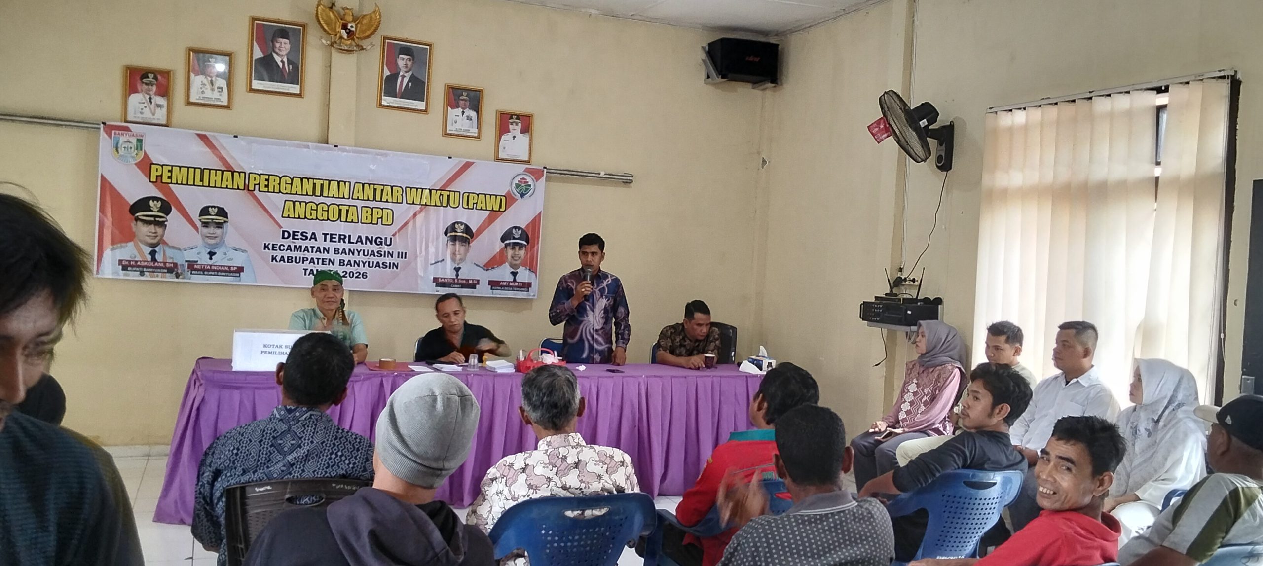 Sementara itu, Camat Banyuasin III, Santo. S. Sos. M. Si, diwakili oleh Kasi PPD Kecamatan Banyuasin III, Imran Hadi. SE. Mengucapkan Selamat atas suksesnya pelaksanaan Pengisian Pergantian Antar Waktu BPD Desa Terlangu tersebut.