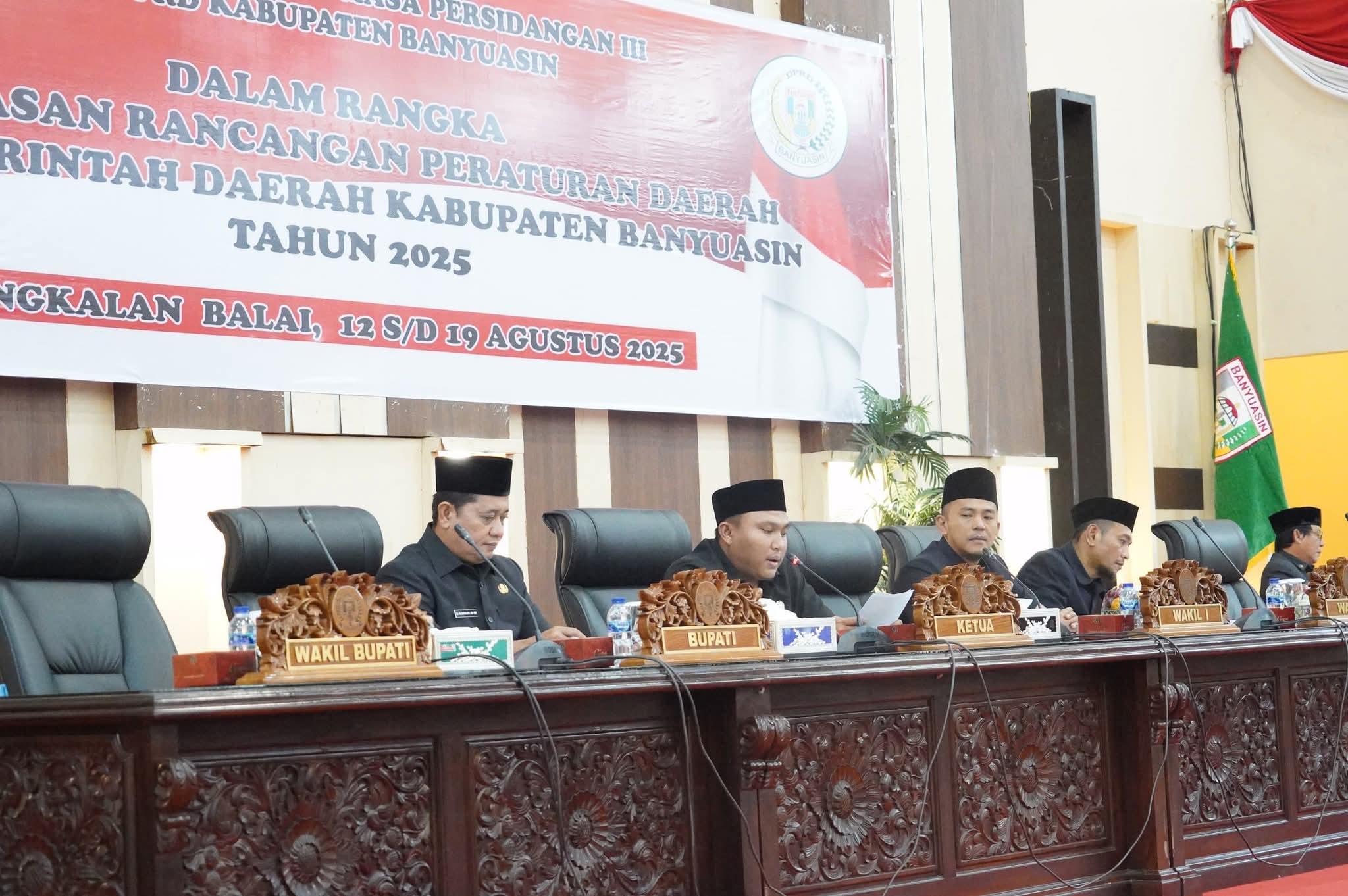 Rapat Paripurna lanjutkan terkait tanggapan tersebut dihadiri langsung Bupati Banyuasin, Dr. H. Askolani, S.H., M.H., dan turut dihadiri oleh Sekretaris Daerah Banyuasin, Ir. Erwin Ibrahim, S.T., M.M., MBA., IPU., ASEAN Eng., Jajaran Kepala OPD Pemerintah Kabupaten Banyuasin, Jajaran Forum Komunikasi Pimpinan daerah (Forkopimda), berbagai para fraksi dan para tamu undangan lainnya.