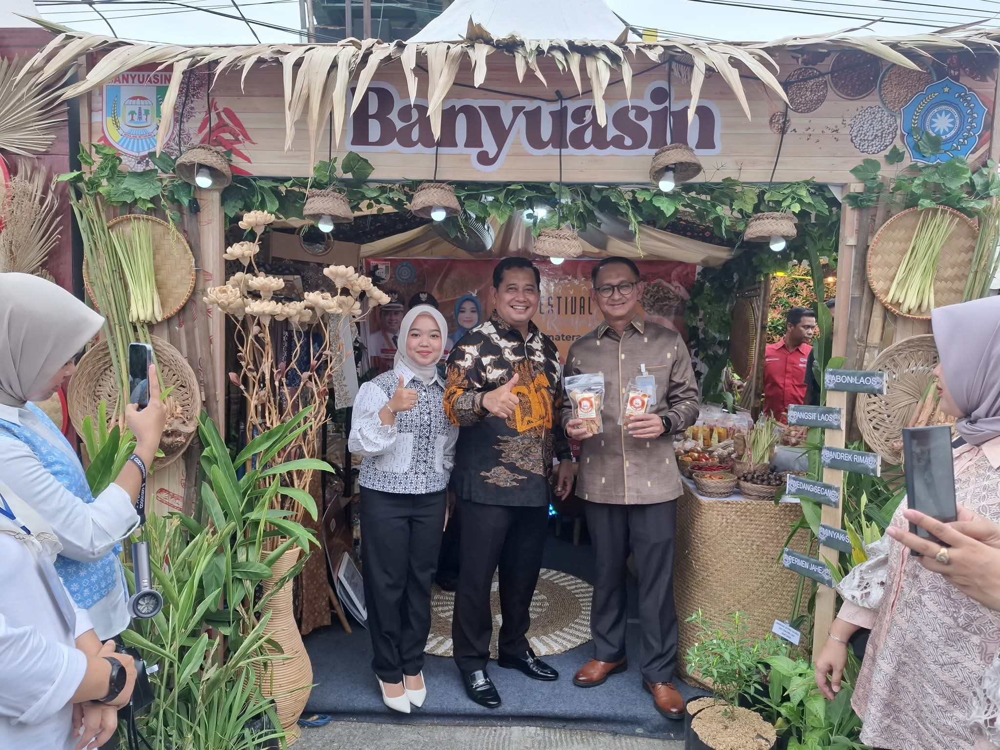 Bupati Banyuasin Askolani mengunggulkan produk Rempah Laos Merah dan produk olahan Laos Merah seperti Abon Laos dan Pangsit Laos saat menyambut kedatangan Gubernur Sumatera Selatan, Dr. H. Herman Deru, SH., MH bersama dengan Ketua TP PKK Sumatera Selatan, Hj. Febrita Herman Deru di Stan Banyuasin.
