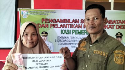 “Kami mengucapkan selamat kepada penerima BLT DD, gunakan dana tersebut dengan bijak agar Bapak/Ibu penerima bantuan bisa merasakan manfaat dari dana tersebut, kami juga secara tor tudor mendatangi rumah warga yang tidak bisa hadir ke kantor desa di karenakan sakit,” ungkap nya kepala desa tanjung menang di kantor desa.
