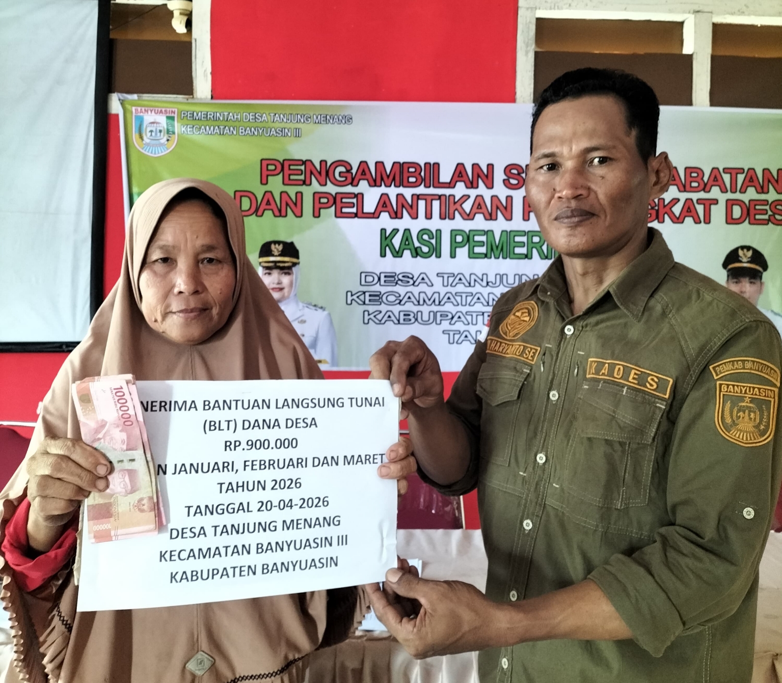 Banyuasi, si.com//Bantuan Langsung Tunai Dana Desa, desa tanjung menang kecamatan Banyuasin lll kabupaten Banyuasin Sumatera Selatan, kegiatan penyaluran BLT bertempat di kantor desa tanjung menang, Senin (20/4/2026)