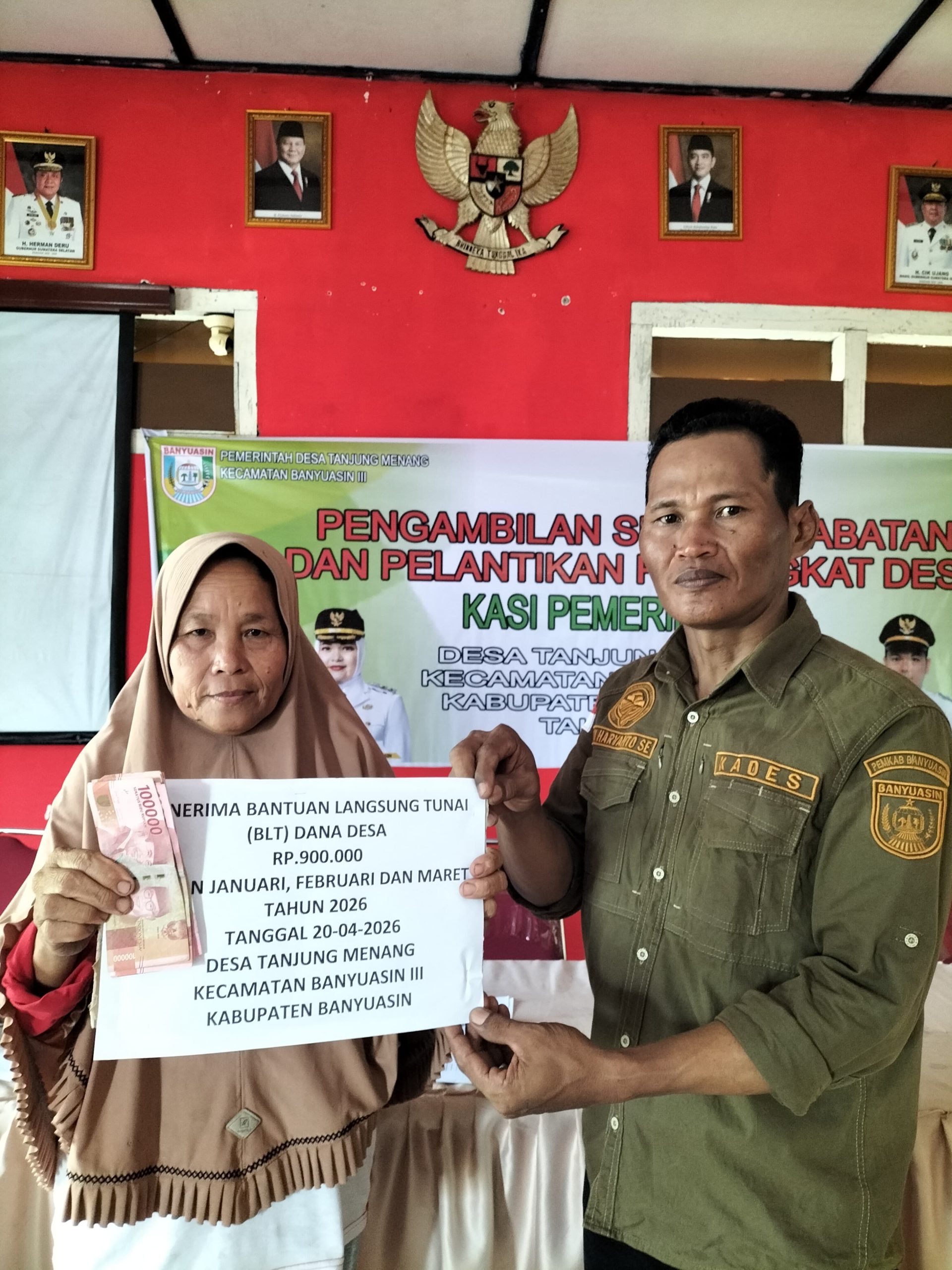 Banyuasi, si.com//Bantuan Langsung Tunai Dana Desa, desa tanjung menang kecamatan Banyuasin lll kabupaten Banyuasin Sumatera Selatan, kegiatan penyaluran BLT bertempat di kantor desa tanjung menang, Senin (20/4/2026)