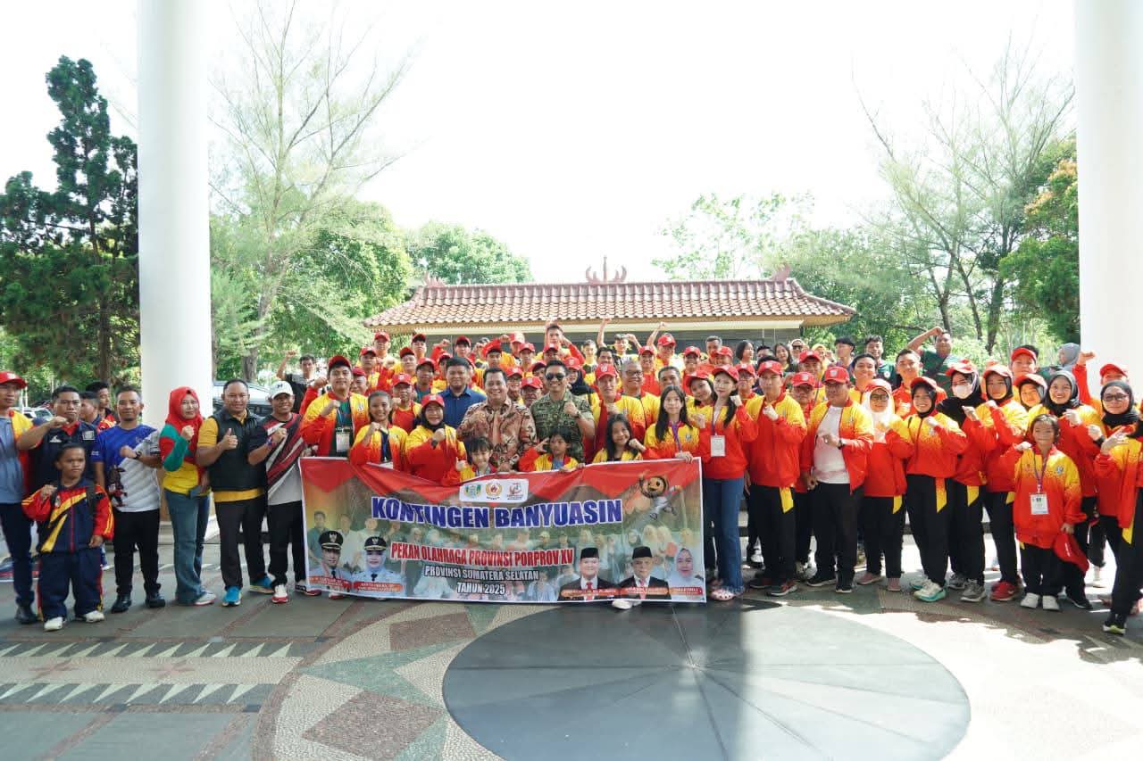 Pangkalan Balai, si.com// Sebanyak 30 Kontingen Peparprov dan Kontingen Porprov 654 orang dari Kabupaten Banyuasin resmi dilepas oleh Bupati Banyuasin Dr. H. Askolani, SH.,MH untuk berlaga diajang Pekan Olahraga Provinsi (Porprov) XV dan Pekan Paralympic Provinsi (Peparprov) V yang digelar di Kabupaten Musi Banyuasin pada 17-31 Oktober 2025 (Porprov) dan 1-7 November 2025 (Peparprov). Pelepasan kontingen berlangsung khidmat dan lancar di Halaman Kantor Bupati Banyuasin, Jumat (17/10).