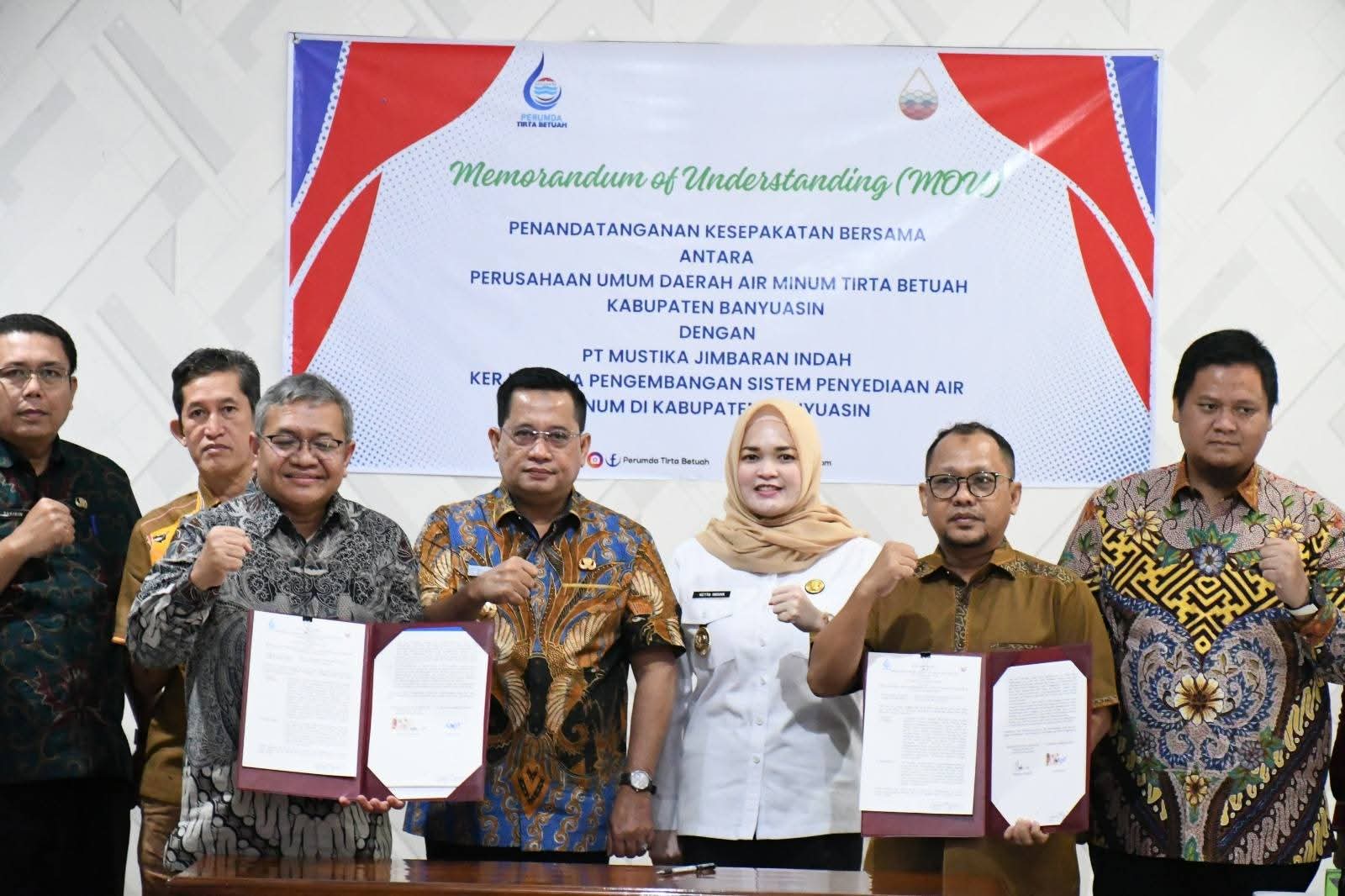 Pangkalan Balai, si.com//Dalam upaya memenuhi kebutuhan air minum masyarakat, Pemerintah Kabupaten Banyuasin melakukan penandatanganan Memorandum of Understanding (MoU) atau kesepakatan bersama antara PDAM Tirta Betuah Kabupaten Banyuasin dengan PT Mustika Jimbaran Indah (MJI).