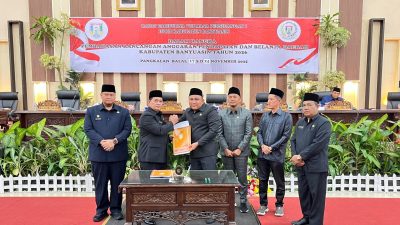 Pangkalan Balai, si.com// Bupati Banyuasin Dr. H. Askolani, S.H., M.H hadiri rapat Paripurna VIII Masa Persidangan I Tahun 2025. Rapat yang berlangsung di Gedung Rapat Paripurna DPRD Kabupaten Banyuasin ini membahas mengenai Rancangan Anggaran Pendapatan Dan Belanja Daerah (RAPBD) Kabupaten Banyuasin Tahun 2026. Senin (17/11/2025)