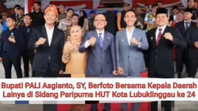 LUBUKLINGGAU — Suasana penuh kehangatan dan kebersamaan mewarnai ruang Rapat Paripurna Istimewa DPRD Kota Lubuklinggau, Jumat (17/10/2025) pukul 14.00 WIB. Acara yang digelar dalam rangka memperingati Hari Ulang Tahun (HUT) ke-24 Kota Lubuklinggau ini dihadiri langsung oleh Gubernur Sumatera Selatan H. Herman Deru, Wakil Gubernur H. Cik Ujang, serta sejumlah kepala daerah se-Sumatera Selatan, termasuk Bupati Penukal Abab Lematang Ilir (PALI), Asgianto, ST.