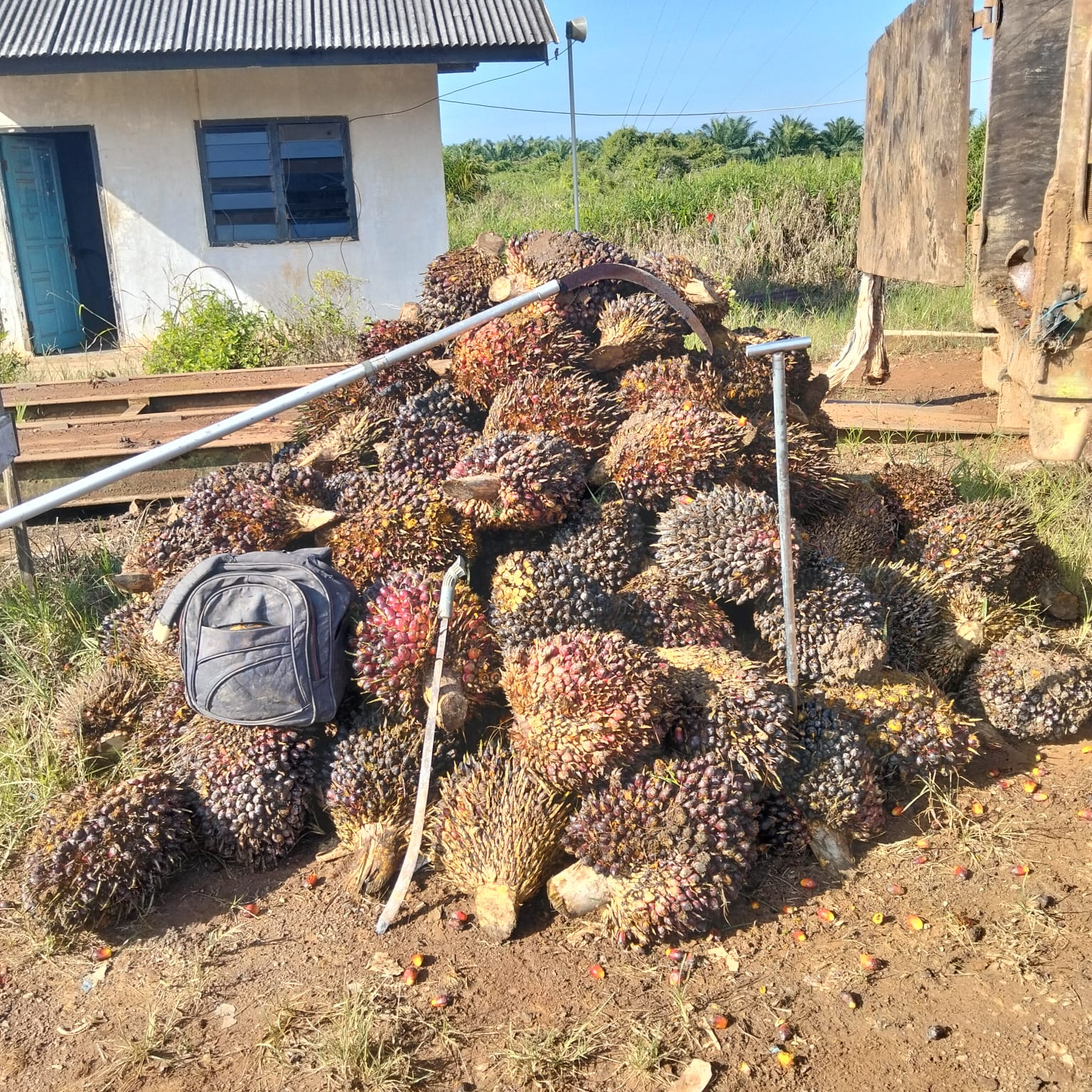 , Adapun Barang bukti yang berhasil diamankan yaitu 125 (seratus dua puluh lima) tandan buah kelapa sawit, 1 (satu) buah eggrek sawit, 1 (satu) buah tojok sawit dan 1 (satu) buah parang.