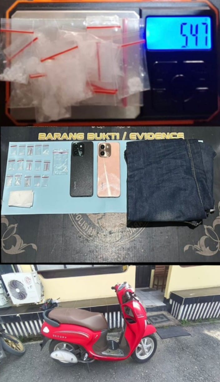 Barang bukti yang diamankan dari tangan pelaku antara lain 15 paket sabu, satu helai celana jeans warna biru, satu tisu, dua unit handphone masing-masing merek Redmi Note 13 dan Vivo Y28, serta satu unit sepeda motor Honda Scoopy tanpa pelat nomor. Semua barang bukti telah disita dan dikirim ke Bidlabfor Polda Sumsel untuk dilakukan pemeriksaan laboratorium.