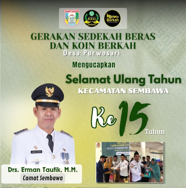 Selama lima belas tahun(15), Kecamatan Sembawa terus tumbuh dan berkembang melalui sinergi antara pemerintah dan masyarakat dalam mewujudkan tata kelola pemerintahan yang profesional, pelayanan publik yang optimal, serta pembangunan yang berkelanjutan.
