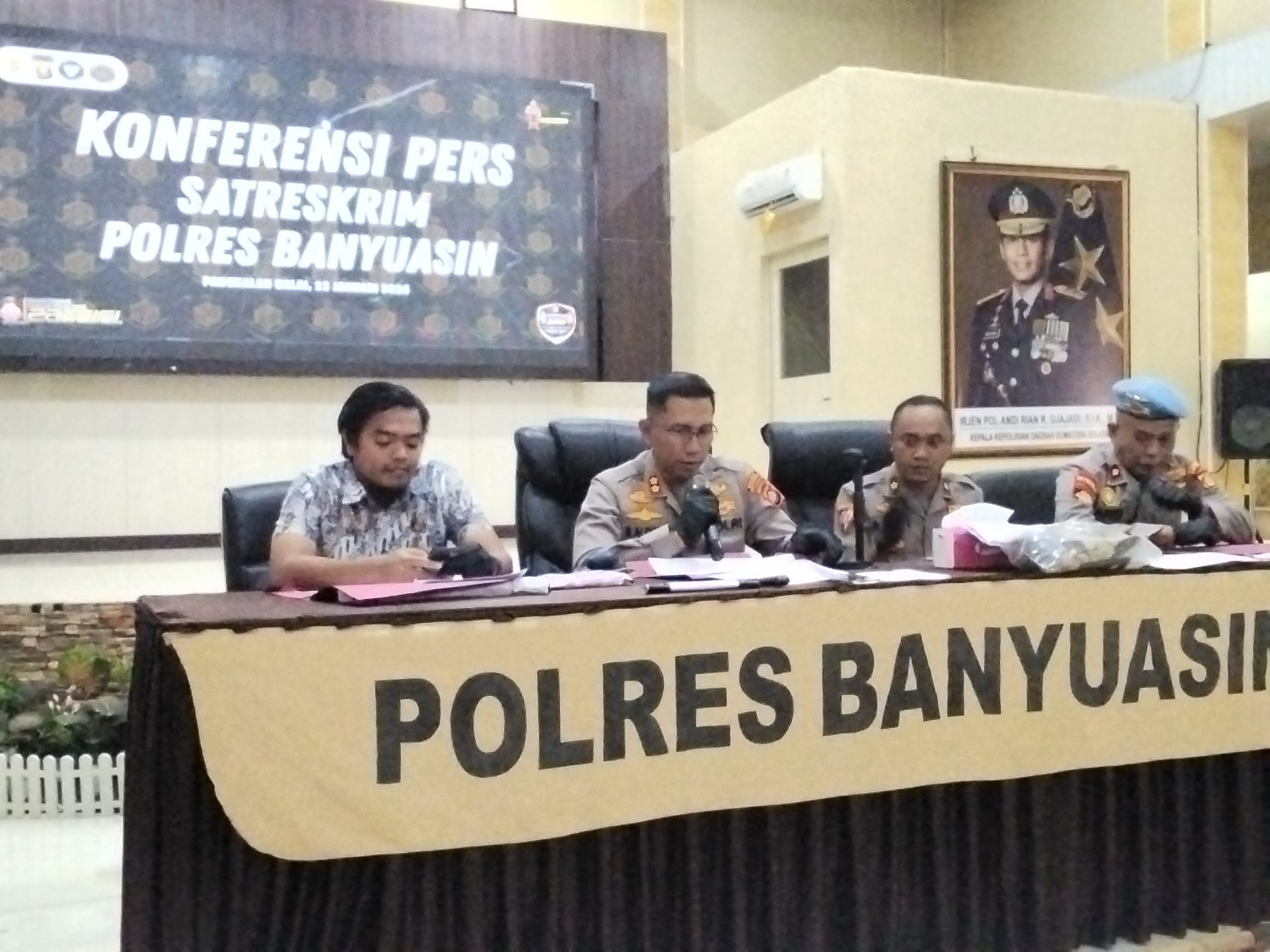 Hal ini disampaikan oleh Kapolres Banyuasin AKBP Risnan Aldino SIK MSi, didampingi Kasat Reskrim AKP M Ilham, Kasat Intel dan Kasi Humas Iptu Abu Bakar, saat memimpin langsung Konfrensi Pers, di Gedung Sanika Satyawada Kapolres Banyuasin,