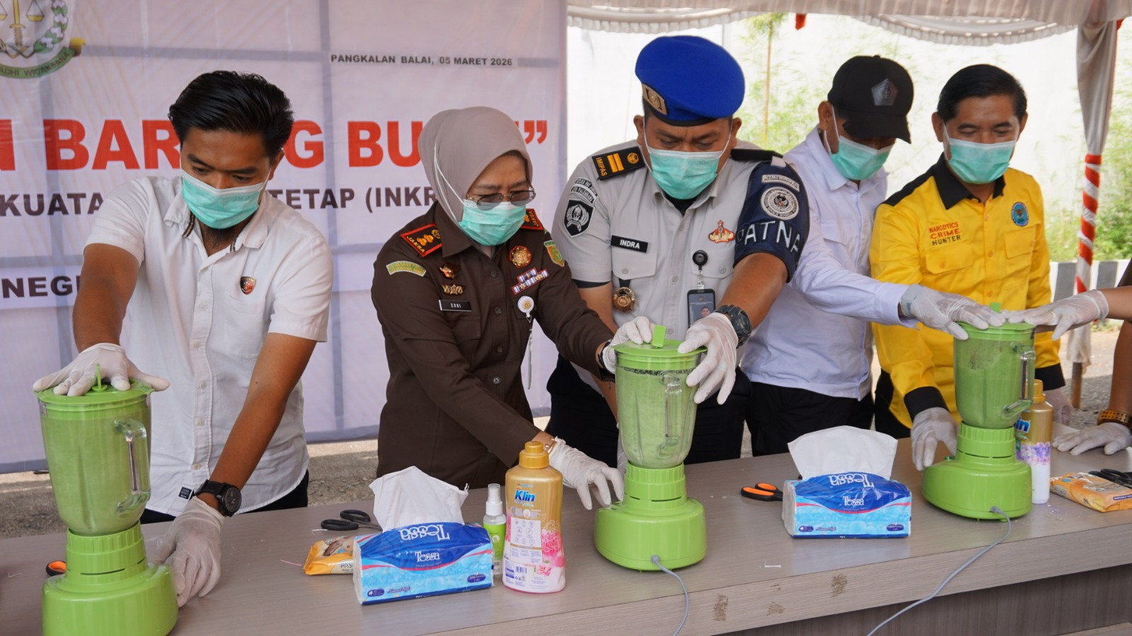 “Proses pemusnahan dilakukan dengan berbagai metode sesuai dengan jenis barang bukti, Narkotika jenis sabu dihancurkan menggunakan blender kemudian dicampur deterjen hingga larut sebelum dibuang ke dalam septic tank,” ungkap nya Kejari banyuasi.