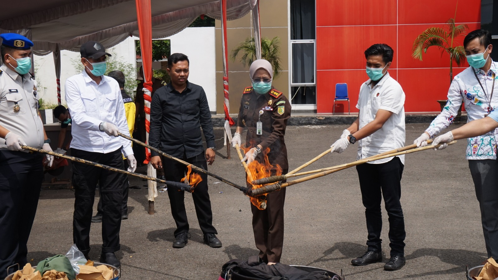 Kegiatan pemusnahan dibuka langsung oleh Kepala Kejaksaan Negeri Banyuasin,Ibu Erni Yusnita,S.H.,M.H. Turut hadir Perwakilan Kalapas Kelas II Banyuasin, perwakilan Polres Banyuasin, Dinas Kesehatan, Pengadilan Negeri Banyuasin,Badan Narkotika Kabupaten Banyuasin serta jajaran Kepala Seksi Jaksa Fungsional, pegawai, dan PPNPN Kejari Banyuasin.