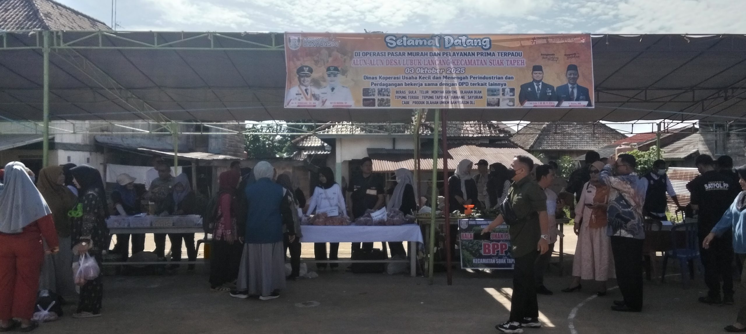 Banyuasin, si.com// Operasi Pasar Murah digelar Pemerintah Kabupaten Banyuasin melalui Dinas Koperasi Usaha Kecil dan Menengah Perindustrian dan Perdagangan (Koperindag) Kabupaten Banyuasin, di alun-alun desa lubuk lancang kecamatan Suak Tapeh, Jum’at(3/5/2025)