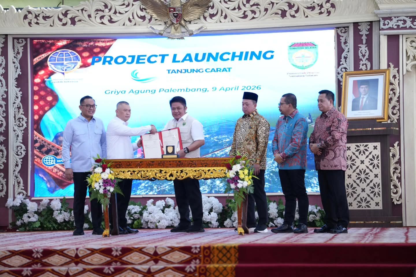 Palembang, si.com// Sebagai pintu gerbang arus ekspor dan impor komoditas di Provinsi Sumatera Selatan, Pemerintah Kabupaten Banyuasin yang dipimpin oleh Bupati Banyuasin, Dr. H. Askolani, S.H., M.H., menghadiri kegiatan Project Launching Pelabuhan Internasional Tanjung Carat Banyuasin yang digelar di Griya Agung Palembang, Kamis (09/4/2026)