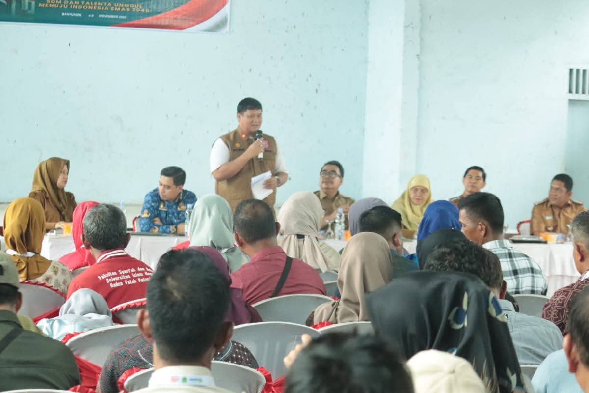 Talang Kelapa, si.com// Sekretaris Daerah Banyuasin, Ir. Erwin Ibrahim, ST., MM., MBA., IPU., ASEAN. Eng didampingi oleh Kepala Dinas Koperindag-UKM Banyuasin, Adam Ibrahim, SE., M. Si resmi membuka Pelatihan Koperasi Merah Putih Kabupaten Banyuasin digelar di Kantor Camat Talang Kelapa, Senin (10/11/2025).