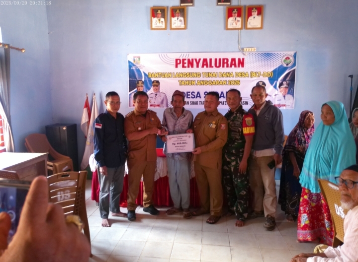 Banyuasin, si.com// Pemerintah Desa Sedang kecamatan Suak Tapeh, kabupaten Banyuasin menyalurkan Bantuan Langsung Tunai Dana Desa (BLT-DD) Tahun anggaran 2025, kepada warga yang termasuk dalam kategori kurang mampu, Selasa (23/09/2025).