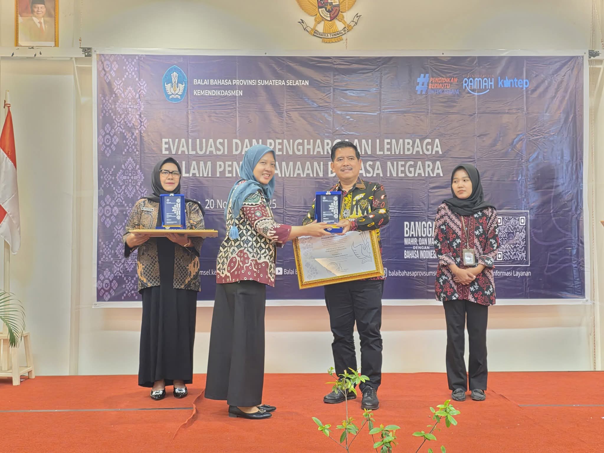 Kegiatan ini diakhiri dengan pemberian Penghargaan kepada 50 Lembaga yang ada di Banyuasin oleh Balai Bahasa Provinsi Sumatera Selatan.