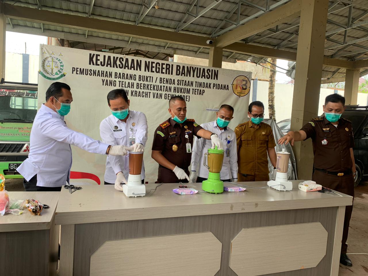 Barang bukti berupa pakaian, tas, plastik, bong hisap, dan kertas dimusnahkan dengan cara dibakar hingga menjadi abu di dalam drum, sementara barang bukti elektronik, timbangan, senjata tajam, dan sejenisnya dihancurkan menggunakan martil hingga tidak dapat digunakan kembali.