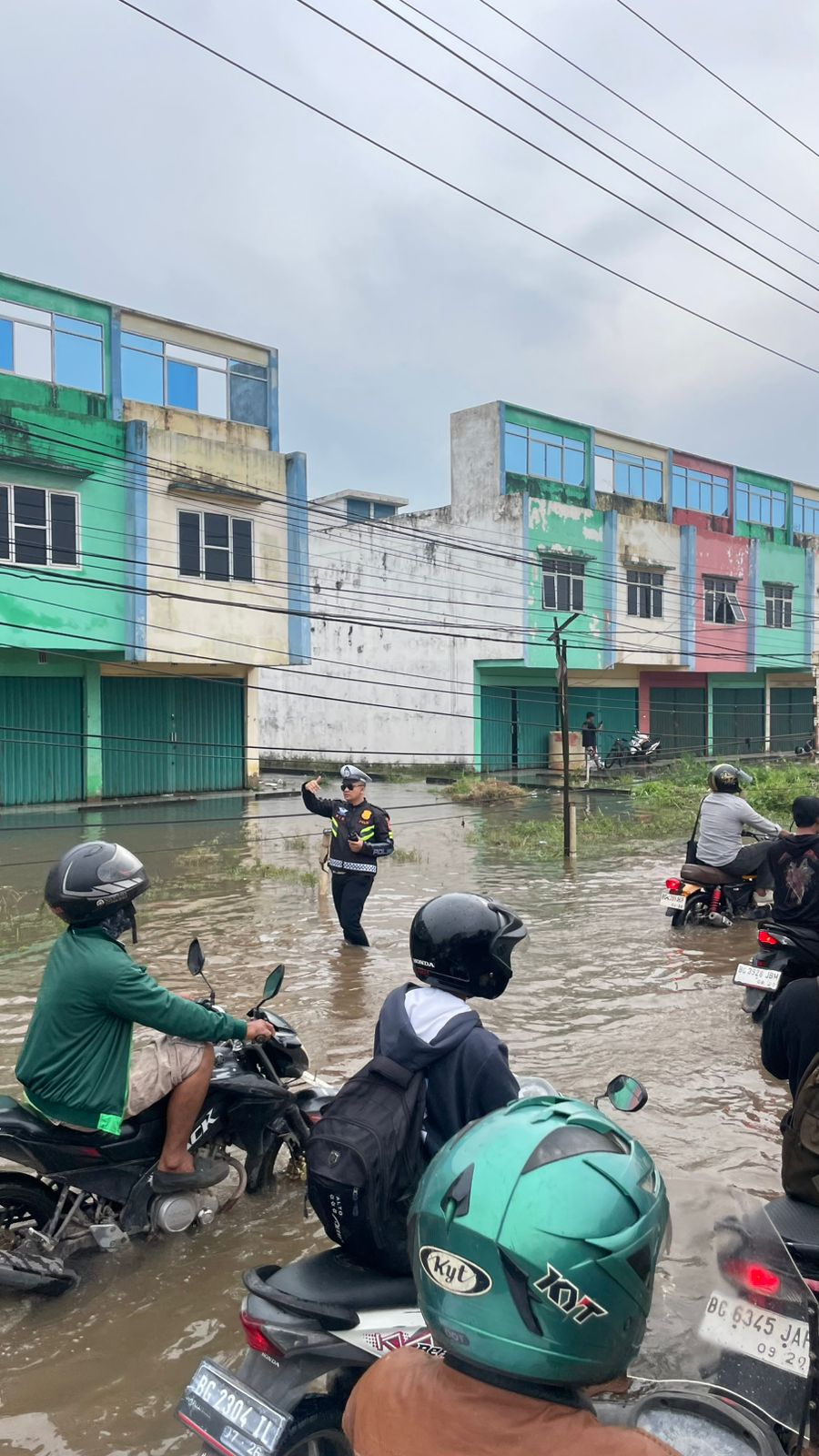 “Air meluap dari saluran karena intensitas hujan yang tinggi, sehingga memperlambat laju kendaraan, terutama roda dua dan kendaraan kecil,” ujarnya di tengah lokasi.
