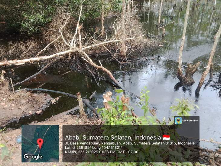 PALI, – Kebocoran pipa minyak mentah milik PT Pertamina Hulu Rokan (PHR) Zona 4 Adera Field kembali terjadi pada Kamis 25 Desember 2025. Tumpahan minyak dari pipa tersebut mengalir ke rawa-rawa yang dikelilingi kebun milik warga di wilayah Desa Pengabuan Kecamatan Abab Kabupaten PALI sehingga tanah dan tanaman di sekitar lokasi secara otomatis menyerap zat pencemar tersebut.