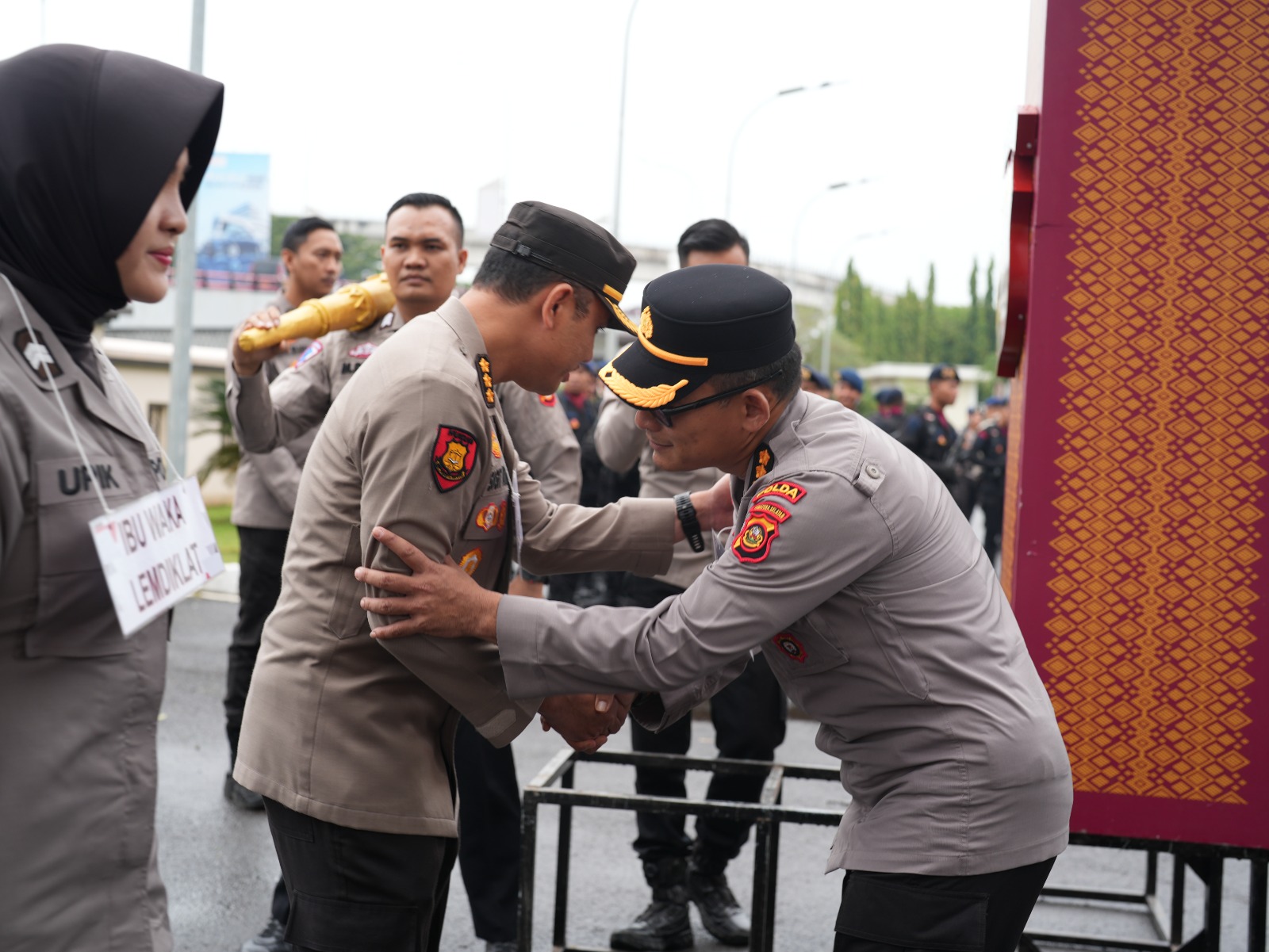 Setelah menyanyikan Mars Polri dan penghormatan pasukan, prosesi inti berupa penyerahan Pataka Polda Sumsel “Atidhira Wira Bhakti” berlangsung khidmat, di mana Pataka diserahkan dari Irjen Pol.