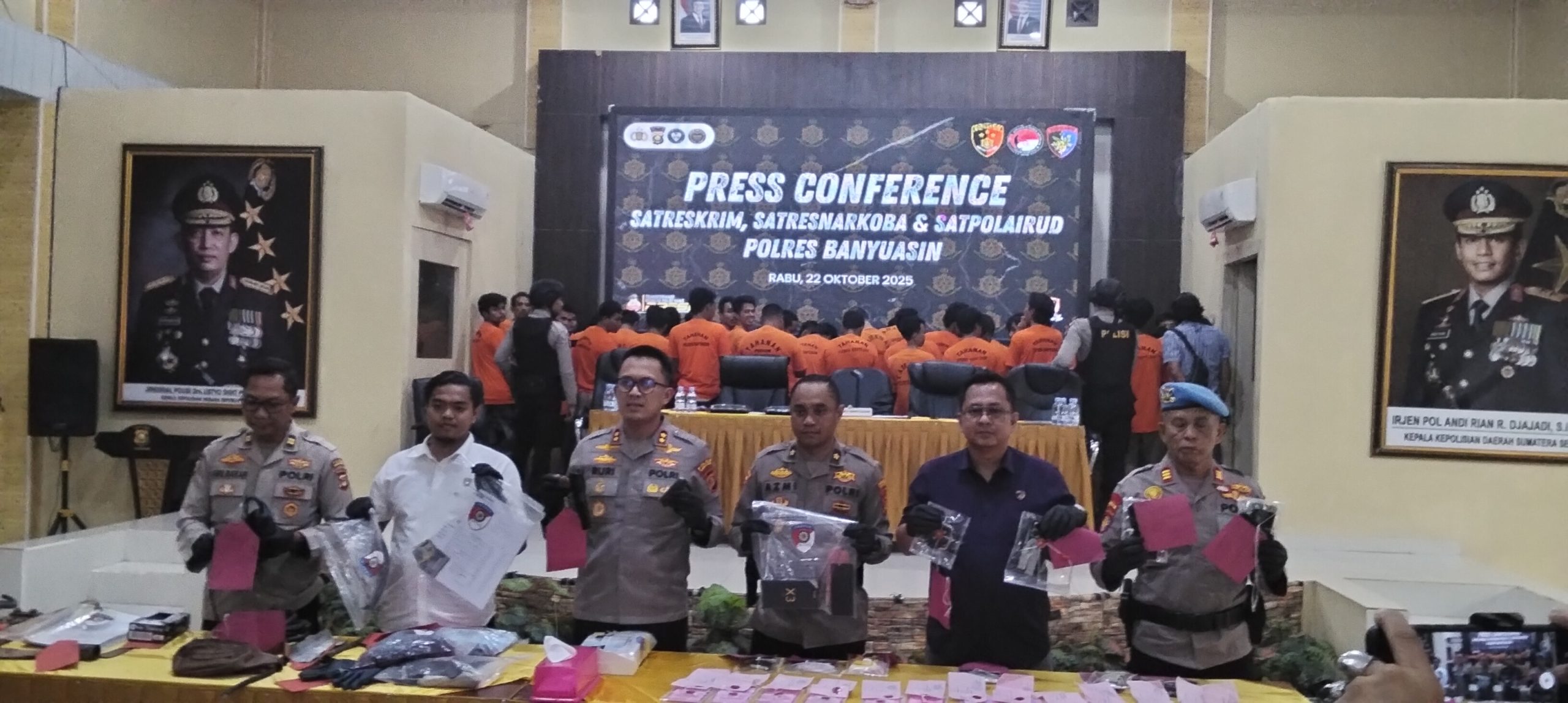 Banyuasin, si.com// Polres Banyuasin berhasil mengungkap dan menangkap tiga tersangka dalam kasus tindak pidana pembunuhan berencana yang terjadi di Jalan Palembang-Betung Km. 40, Desa Tanjung Agung, pada Selasa (21/10/2025) sore. Ketiga pelaku diamankan hanya dalam hitungan jam setelah kejadian.(22/10/2025)