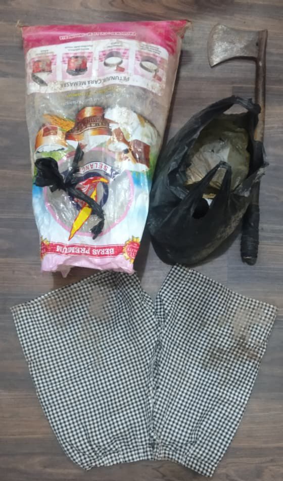 1 bilah kapak besi (senjata ancaman) sepanjang ±50 cm.