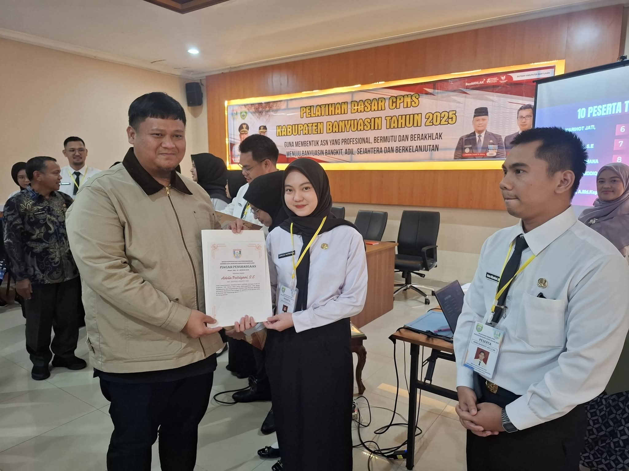 Palembang, si.com// Pelatihan Dasar Calon Pegawai Negeri Sipil Kabupaten Banyuasin Tahun 2025 resmi ditutup ditandai dengan pelepasan tanda peserta oleh Sekretaris Daerah, Ir. Erwin Ibrahim, ST., MM., MBA., IPU., ASEAN. Eng digelar di Asrama Haji Palembang, Kamis (23/10)2025).