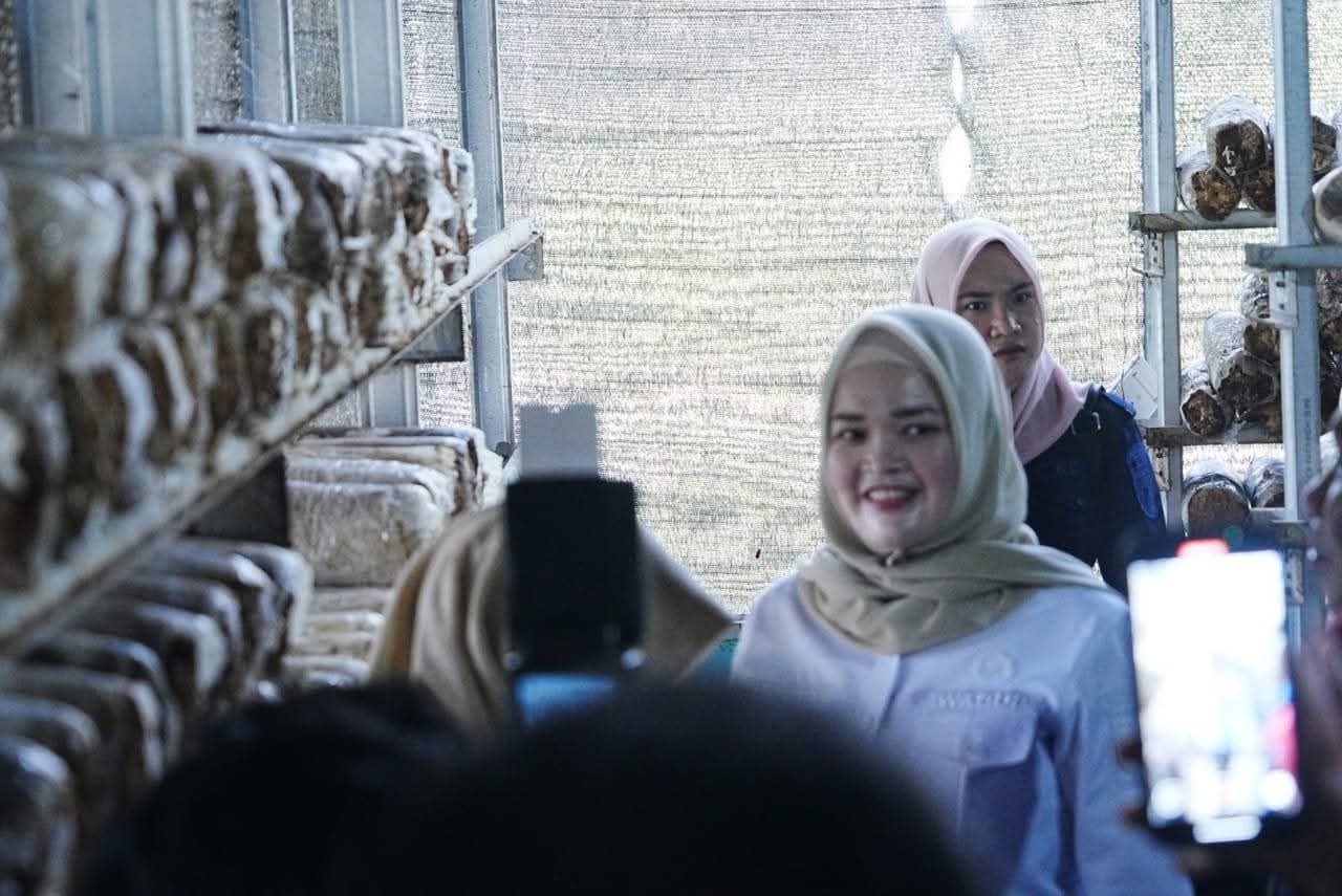 Wabup Netta melihat langsung proses hilirisasi jamur tiram yang diubah menjadi produk bernilai tambah.