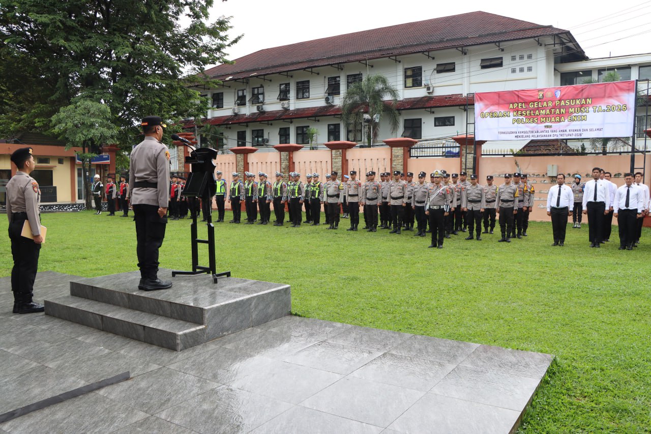 Muara Enim – Apel Gelar Pasukan Operasi Keselamatan Musi Tahun 2026 digelar di Lapangan Mapolres Muara Enim, Senin (2/2/2026). Kegiatan tersebut dipimpin langsung oleh Wakapolres Muara Enim, Kompol Sapta Eka Yanto, SH, MSI, dan berlangsung dengan khidmat.