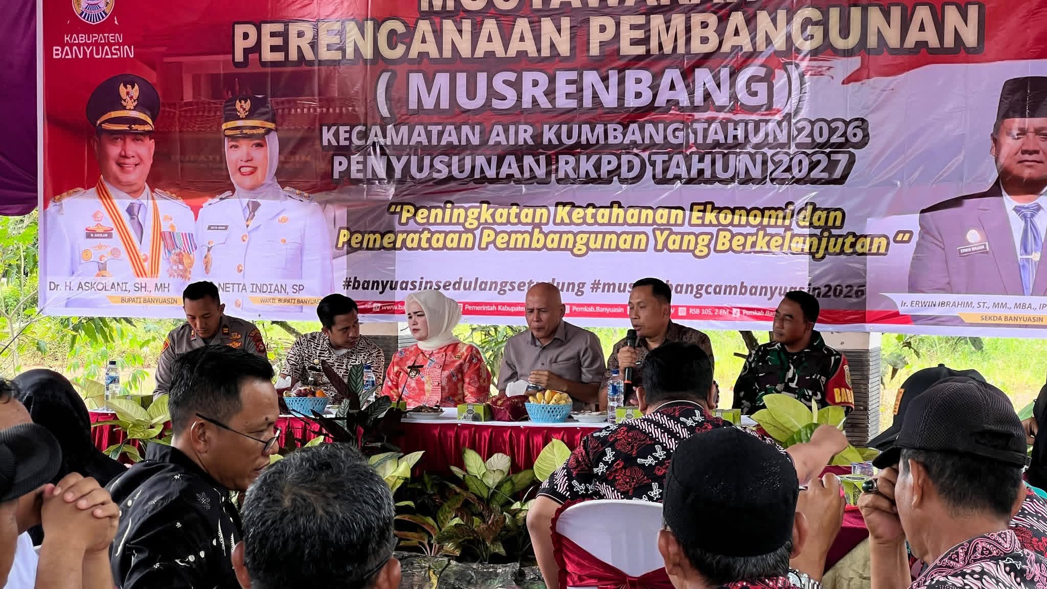 Air Kumbang, si.com// Wakil Bupati Banyuasin, Netta Indian, SP menghadiri Musyawarah Rencana Pembangunan (Musrembang) Tingkat Kecamatan Air Kumbang Tahun 2026 berlangsung di Aula Kecamatan Air Kumbang, Kamis (5/2/2026).